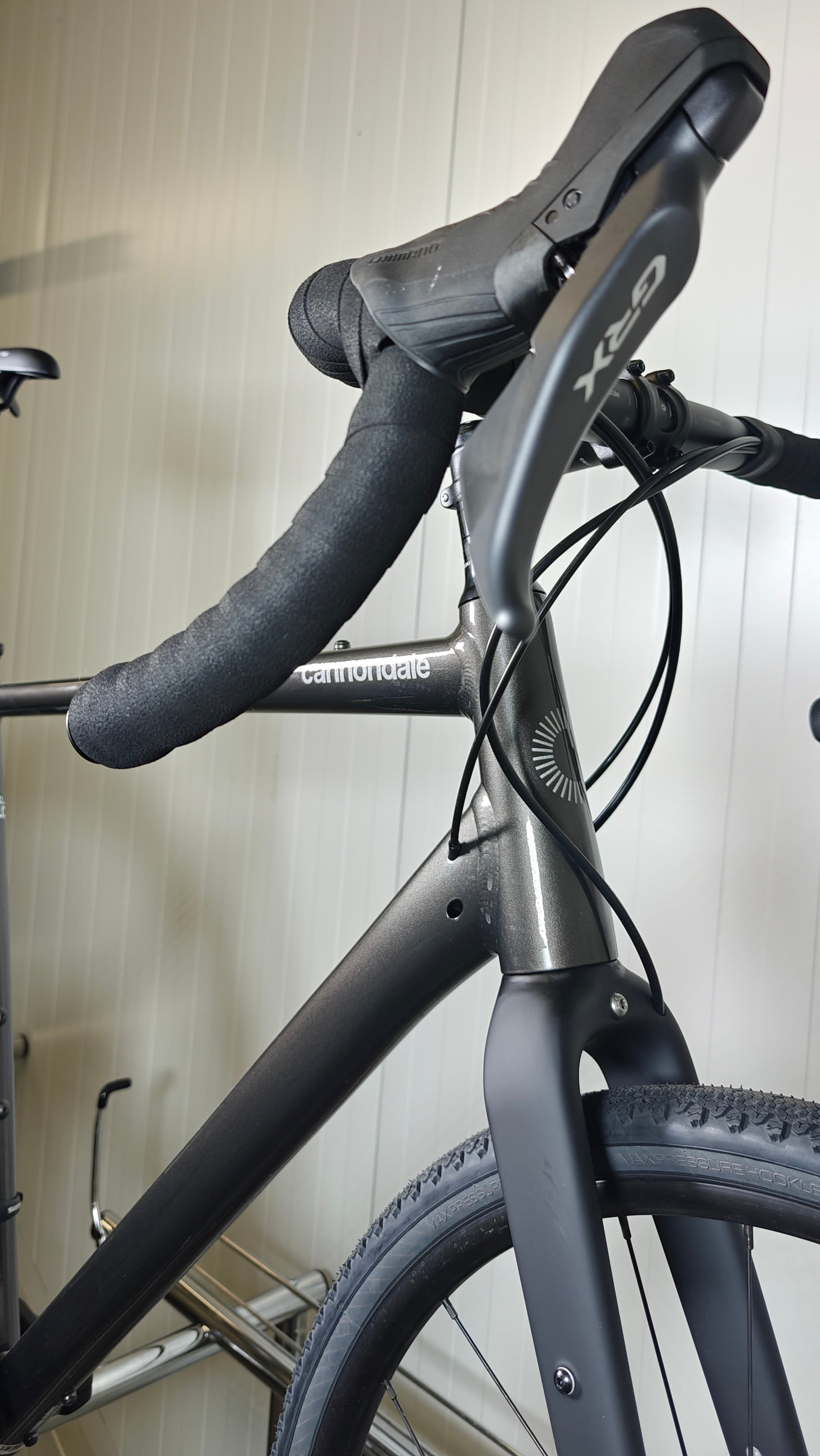 Cannondale topstone 1 on alumiinirungolla ja hiilikuitukeulalla varustettu gravelpyörä. Gravel pyöräily sujuu huolettomasti luotettavan ja nopean Shimano GRX 2x11 -osasarjan ansiosta.