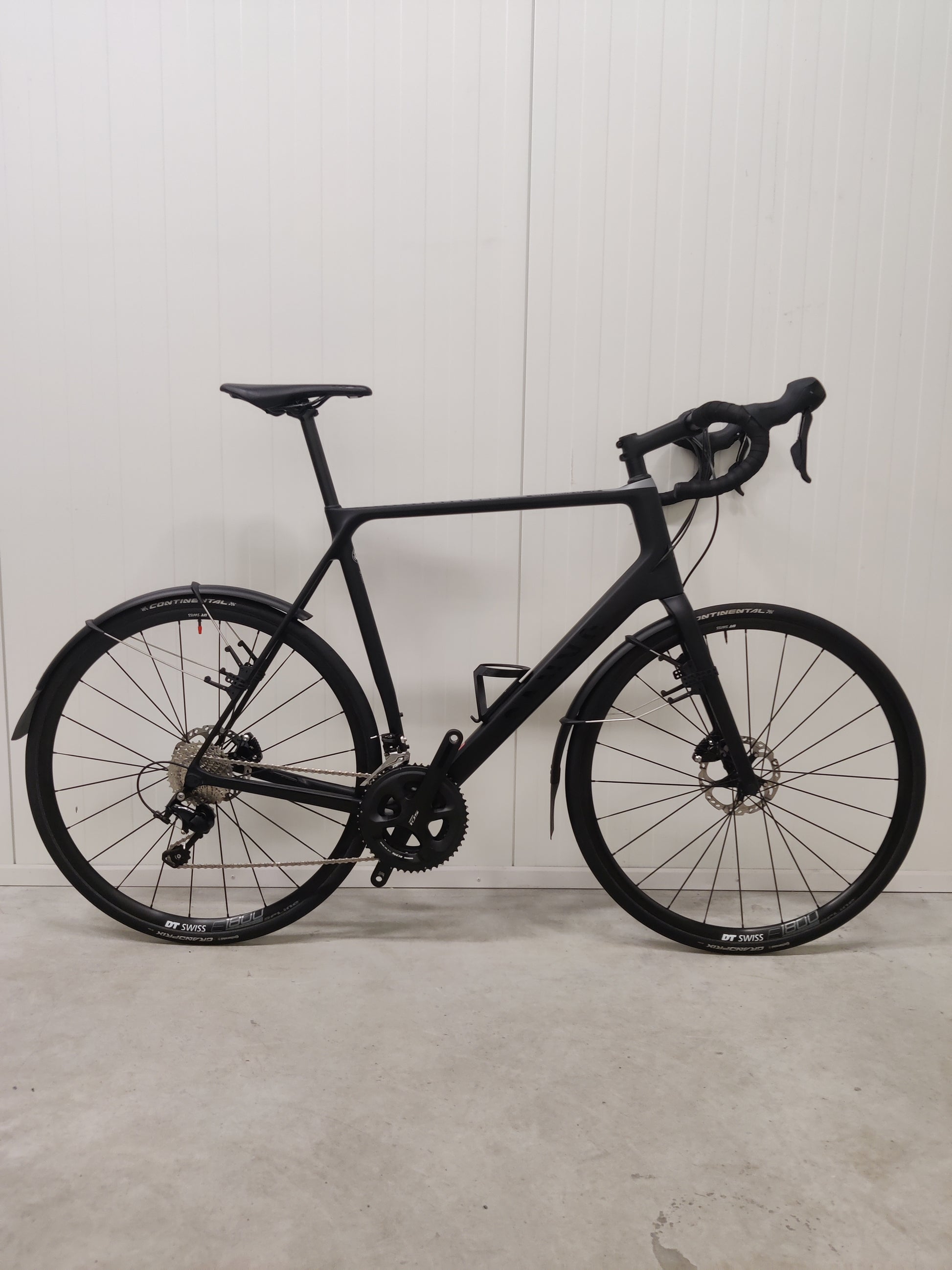 Shimano 105 osasarja, DT Swiss E 1800 Spline DB, Tubeless-ready vanteet, Rungonmateriaali on hiilikuitua.
