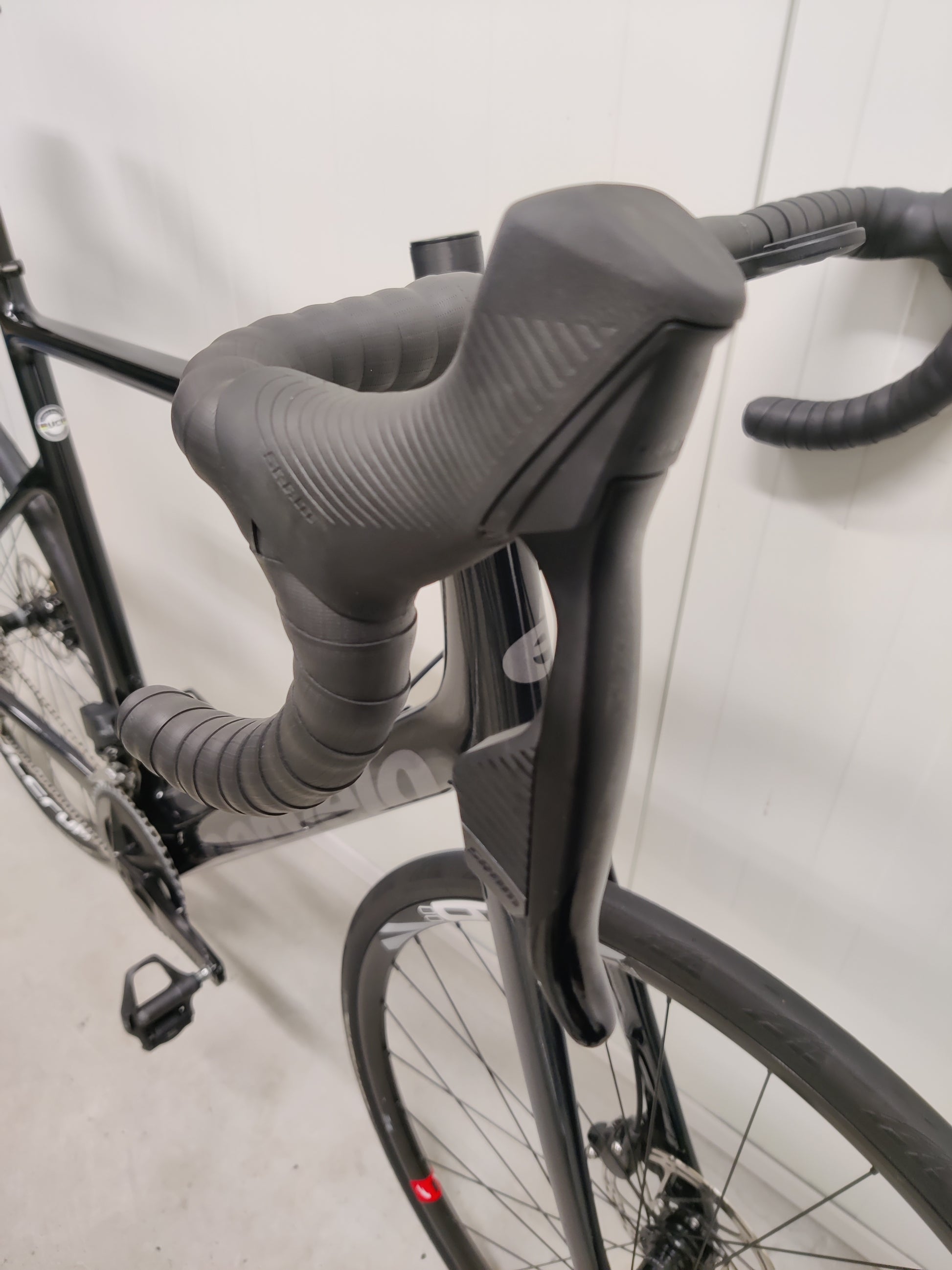 Pyörä on kunnoltaan siisti, vain muutamia pieniä naarmuja joista otettu kuvat. Pyörän mukana tulee laturi sekä kuvassa olevat Shimano Ultegra maantiepolkimet.