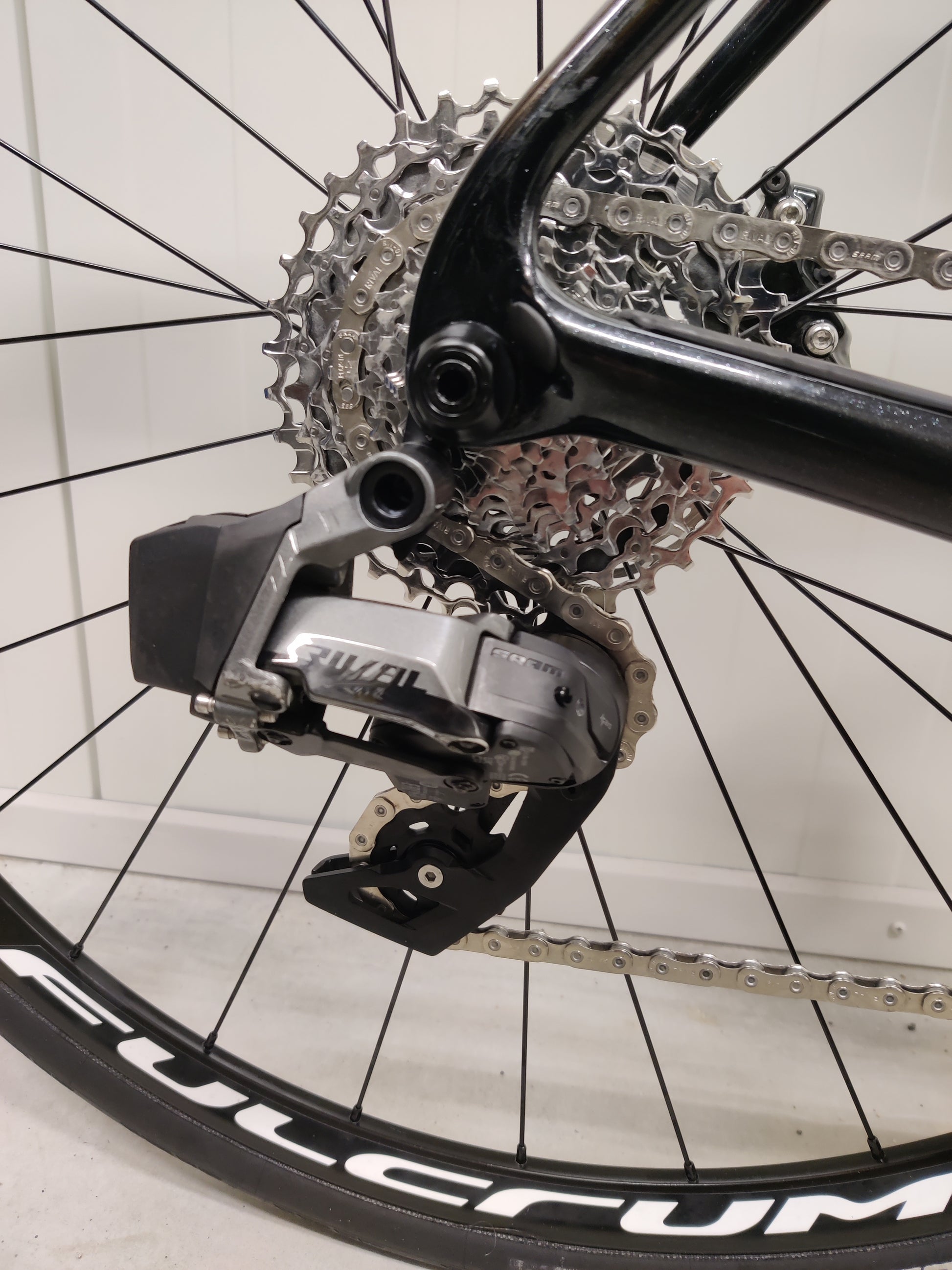 Sram Rival axs 2x12 osasarja. Runko: hiilikuitua. Keula: hiilikuitua. Vanteet: Fulcrum Racing 900 DB